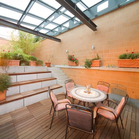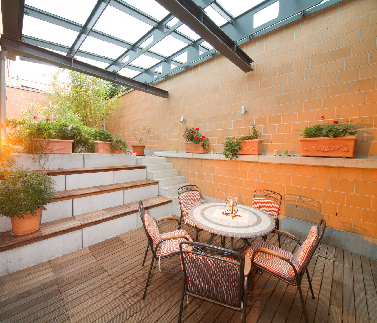Beliebt besonders im Sommer, aber geöffnet auch im Winter zum Abkühlen nach heißen Saunagängen: der Lichthof lädt zum Verweilen und Entspannen. An der frischen Luft füllen Sie Ihre Flüssigkeitsspeicher wieder auf.